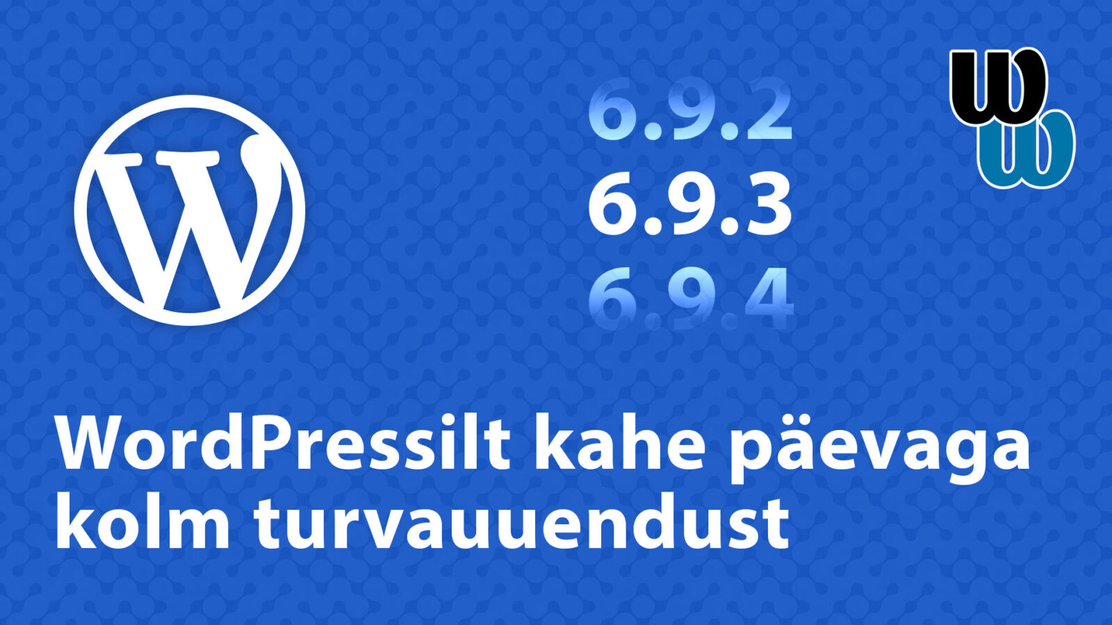 - WordPress 6.9.1: pisivead parandatud, sujuvam töövoog tagatudWordPressi meeskond on välja andnud WordPress 6.9.1, mis keskendub väiksematele… Loe edasi: WordPress 6.9.1: pisivead parandatud, sujuvam töövoog tagatud