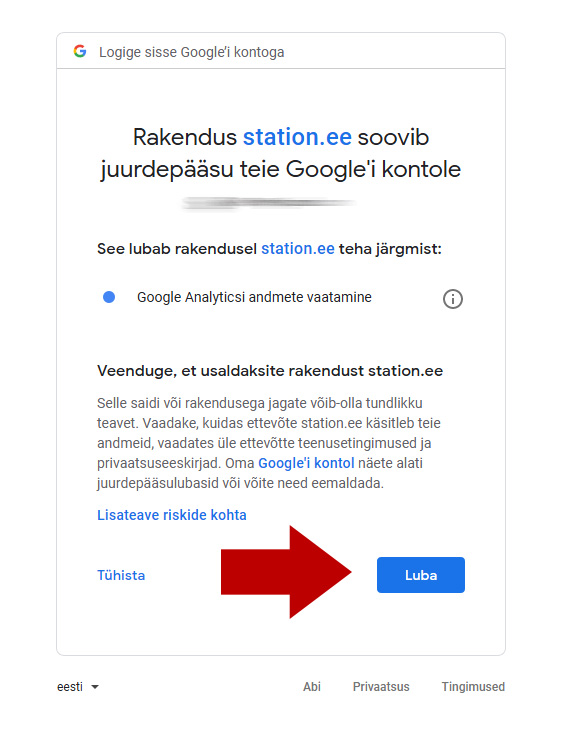 - Seejärel avaneb juba Google konto sisselogimise aken ning seejärel õiguste küsimine info jagamise kohta kus tuleb vajutada Allow/Luba nuppu